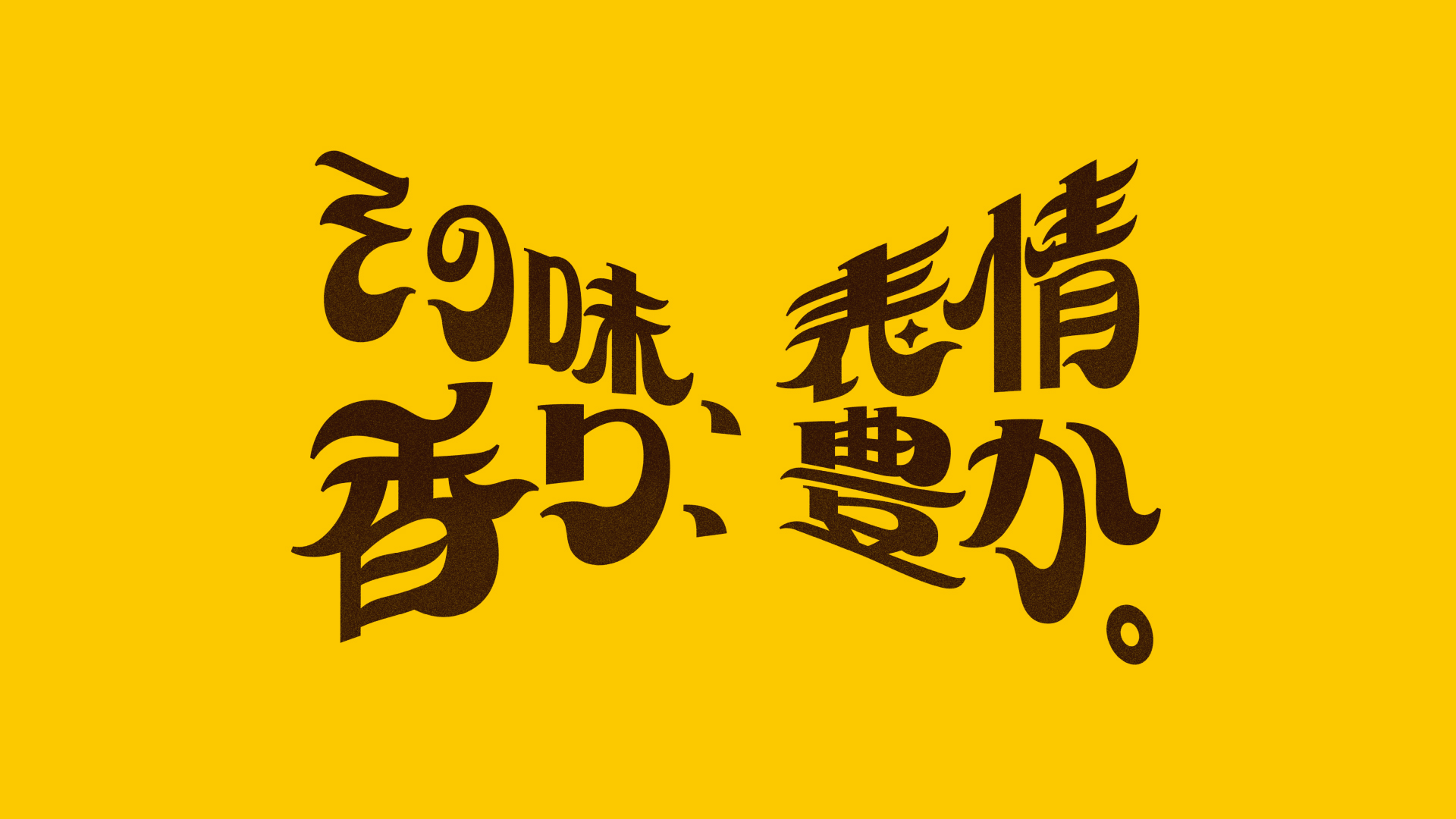 味や香りの表情の豊かさをビジュアル全体からも感じてもらえるよう、表情の移りを感じさせるような流動的な文字デザインに。不規則な動きを持たせることで、味や香りが口の中を漂うような印象を落とし込んだ。